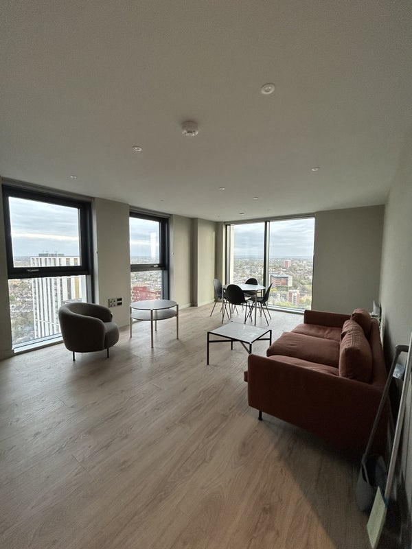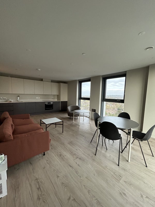 This beautiful 23rd-floor, 2-bedroom apartment comes furnished with a bespoke furniture package and boasts an open-plan living/kitchen/dining area. The kitchen is fully fitted with appliances, including an induction hob, fridge/freezer, dishwasher and the utility cupboard has an 8kg washer/dryer. The apartment benefits from floor-to-ceiling windows that let in plenty of natural light, built-in wardrobes with mirrors, and a 3-piece bathroom suite with storage.