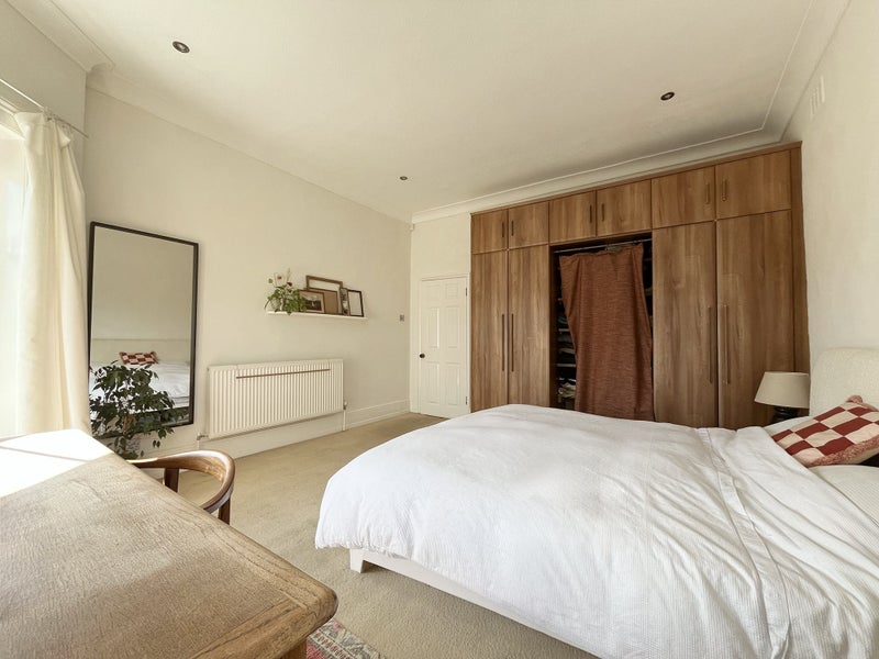 This south facing flat, has the master room availbable with tall ceilings and period features A light and spacious room with multiple sash windows.