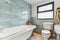 - A bright, airy bathroom with bath + overhead shower, storage cupboard, towel radiator