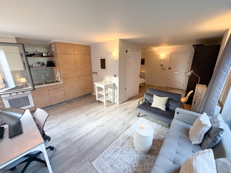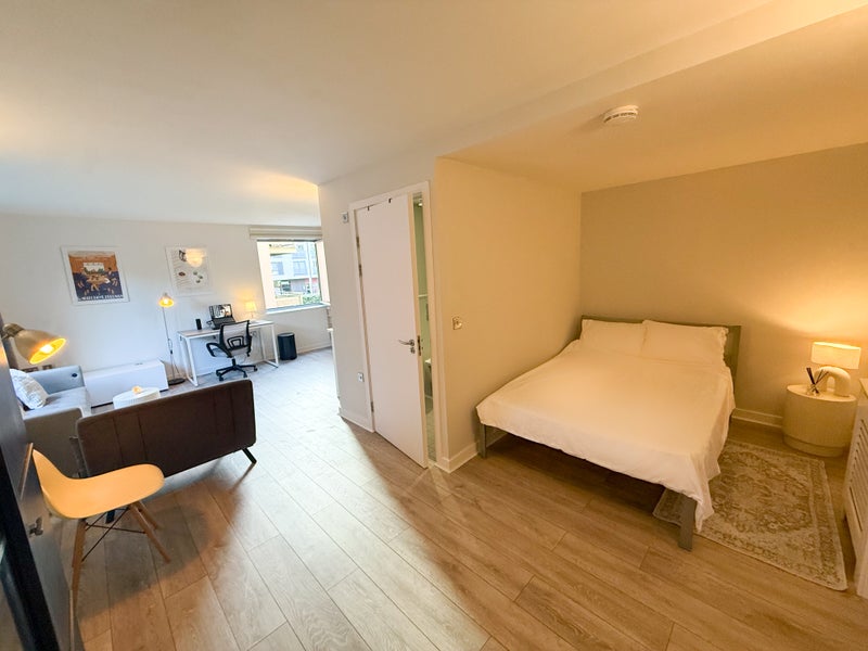 The studio is about a 2-minute walk from Deptford Bridge station, and a similar walk to a Co-op and Tesco.