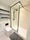 * Walk-in shower with black framed glass