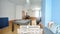 - Lounge (4.3m x 3.4m) with 2-seater sofa, 65-inch smart TV, PS4, Amazon Prime, 2-person dining space, storage