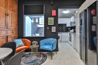 After long day of work, you can either cook and chill out in beautiful fitted kitchen/dining and living area comprising of American style double door fridge/freezer, washing and drying machine, hub, oven, microwave, toaster, kettle , dining table, occasional chairs and sofa, or a cute back garden.