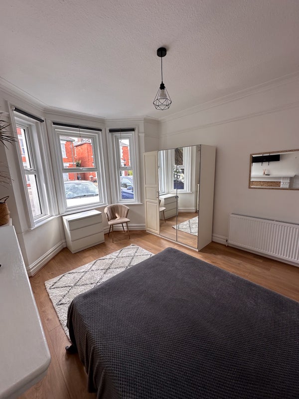The room is Fully furnished – Includes bed, spacious 3-door wardrobe, bookcases, drawers,