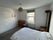 The bedroom is carpeted and furnished with a double bed, mirror and chest of drawers. It also has a large window. The bathroom is modern, clean and has a bath with a shower head.