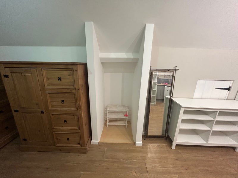 Room 1 Is a double with a kitchen and is available from March 2026. It has just been renovated. Great views of the garden and beyond. It comes furnished, with a double bed with new mattress, wardrobe chest of drawers bedside table. Kitchen area consists of cooker, fridge, small worktop area, shelving and cupboards. Dining area with a table and 2 chairs.