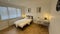 • a bedside unit and a desk with lamp,