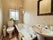 First-floor bathroom: fully tiled, with bath and shower over, wash basin and WC