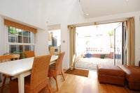 Downstairs features a lounge, kitchen, bathroom and dining room which has glass doors opening up fully to a private courtyard. Upstairs is the bedroom which has a dressing area and a study area. With light wooden floors, plenty of roof and side windows allows natural light to flood the house.
