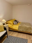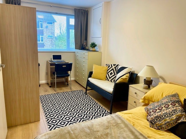Very clean and spacious double bedroom fully furnished with a bedside table, drawers, cupboards and storage place in an end terrace town house. It is newly decorated with new flooring.