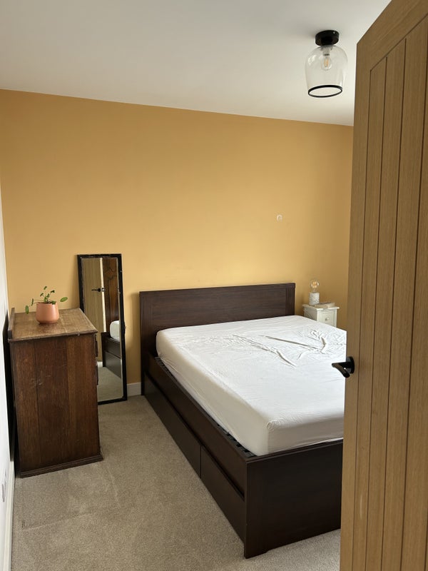 The room has thick pile carpet, a king size bed with under bed storage and a chest of drawers. The whole house has been refurbished with new electrics, plastering, carpets, doors and decor throughout. There are two reception rooms so plenty of space to watch TV or chill in the evenings and we also have a big garden.