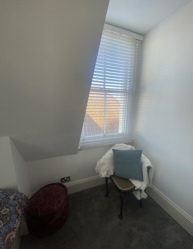 Fully furnished with brand new double bed, French armoire wardrobe, desk & deep grey carpets. A very cosy quiet room with oblique sea views.