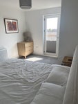 Bright, modern ensuite room available in a clean, relaxed two-bed apartment with sea views and easy access to the South Downs. The room comes partially-furnished with a king-size bed, memory foam mattress and built-in wardrobe. Additionally there is en-suite shower/toilet, tv aerial connection, window blinds