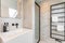 The bedroom exudes luxury with its fitted wardrobes and en-suite bathroom with both a shower enclosure and freestanding bath. The expansive bifold window that floods the space with natural light and boasts rooftop views towards the sea.