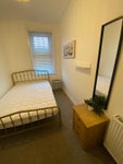 Mid-size refurbished bedroom with private off-suite shower room in a professional shared house.