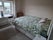 This south facing room is fully furnished with beautiful sea views. Furniture includes a double sized bed with new mattress, bedside table, large sturdy clothes rail, desk and small chest of drawers. It is a beige colour with a cosy cream carpet.