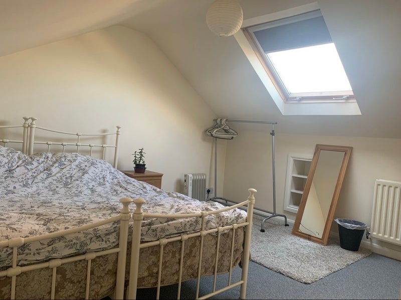A spacious double room with its own staircase, and large storage area, is available in a beautiful , sunny house in Eastbourne. The room benefits from being at the top of the house, a peaceful spot, with views over All Souls landmark church and the downs. A light and welcoming space.