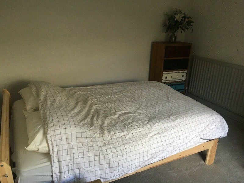 Note: The room is furnished with a bed, mattress. chest of draws and rail for hanging clothes.