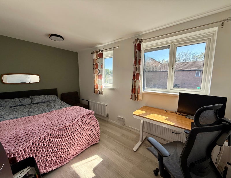 A spacious double bedroom up on the first floor— already furnished with plenty more space to host your dreams, guitar, or Amazon regret purchases.