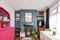 Bedroom is furnished with a double bed, chest of drawers, desk, and built in wardrobe.