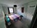 The larger room is fully furnished with a double bed, mattress, sofa, bedside table, large wardrobe, desk and desk chair.