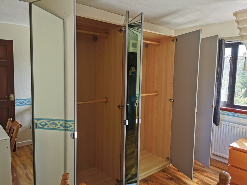 Spacious fitted wardrobe with mirrored doors and excellent storage