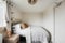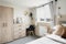 Spacious room, furnished with double bed, bedside table , desk + chair, wardrobe and chest of drawers