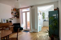 This lovely two-bedroom home has a light, open-plan dining room (with piano) and kitchen, a cute and colourful garden, and two good-sized bedrooms.