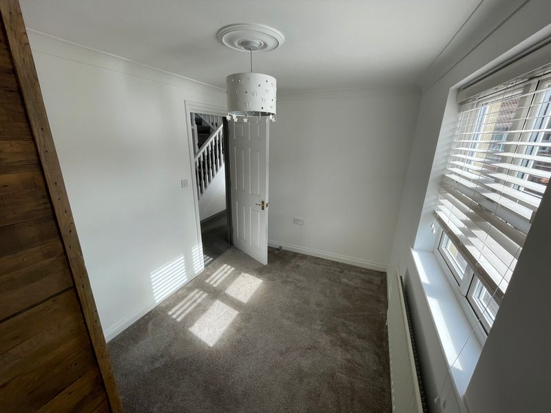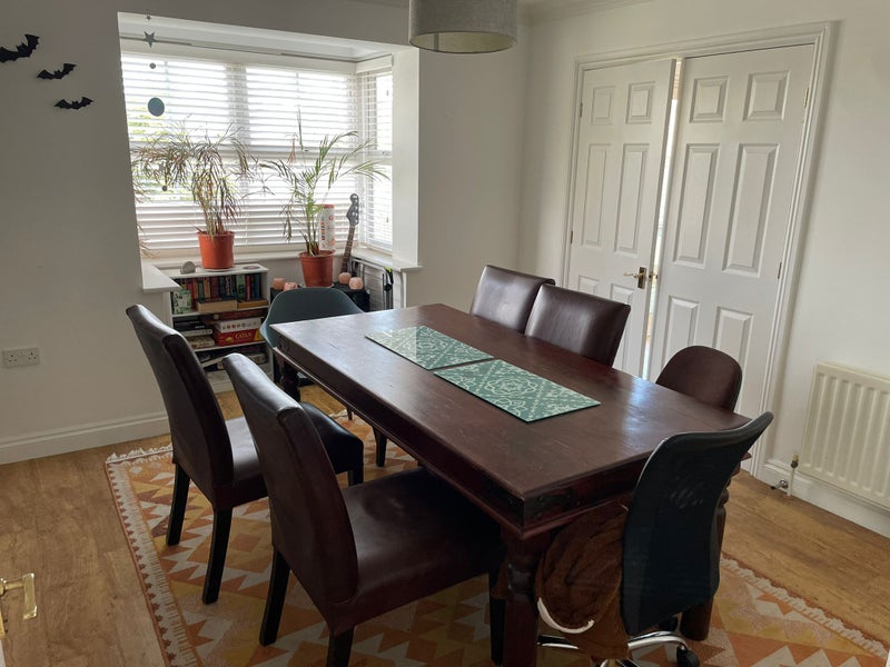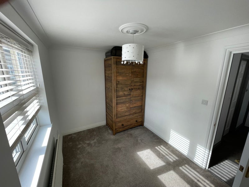 The room is big enough for a double bed, wardrobe, desk and some floor space. While the room is small, the house is very large and there is lots of shared space for extra storage and home office.