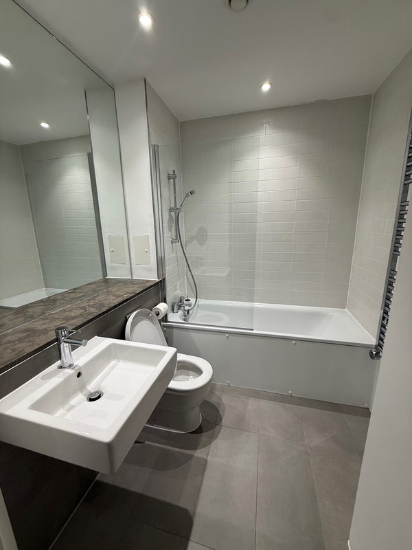 A modern en-suite room is available in a luxurious two-bedroom penthouse. The apartment includes a shared kitchen and lounge, plus a balcony with great views.