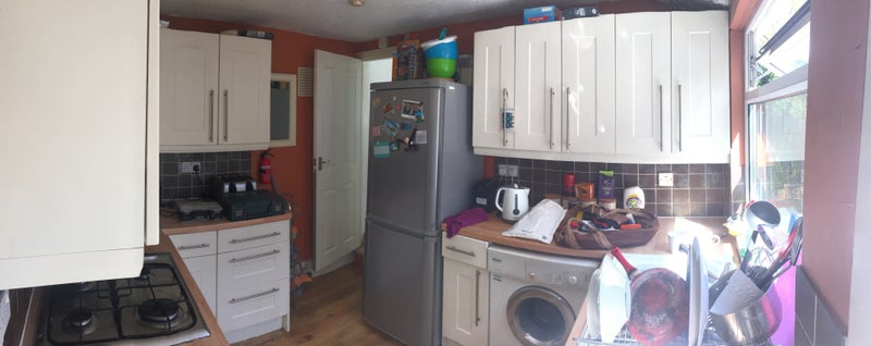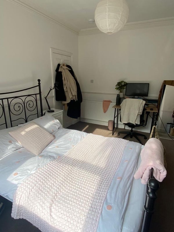 The room is bright and airy, and comes fully furnished, although our landlord is flexible with moving things in and out as you wish. Rent includes water, council tax and internet. Gas and electricity probably average out at around £50/month. We have a decent-sized living/dining area, kitchen and two bathrooms. There is also a secure outhouse that can be used to store bikes, plus a lawned back garden which is great for the summer.