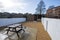 ✅Kitchenette area with fridge, sink, and cupboard storage