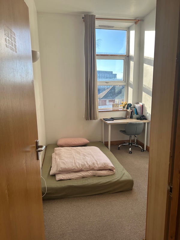 Double bed. Share bathroom and kitchen. Female preferred. Student and muslim is preferable. Share flat with family with 2 toodlers. We are from Indonesia