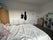 Includes a big room with. a double bed and bay window. Other furniture included: desk, chair, wardrobe, dresser, nightstand, a few shelves on the walls.