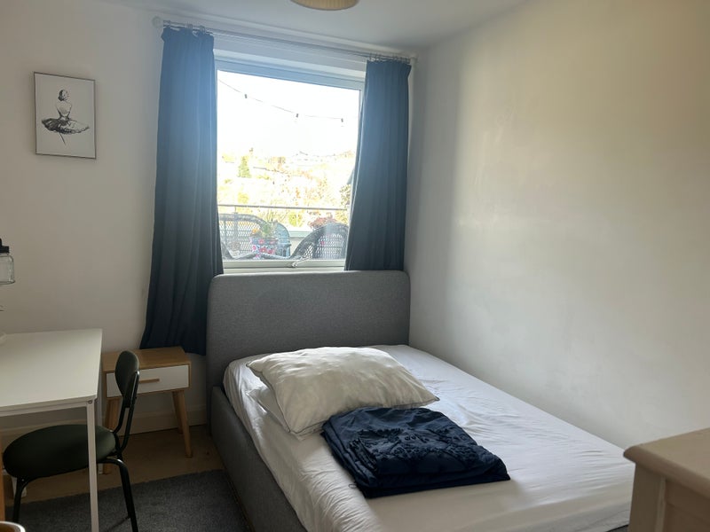 The flat benefits from a private balcony with lovely afternoon sun and views towards Clifton — perfect for relaxing after work or study.