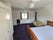 The smaller room is fully furnished with a double bed, mattress, walk-in wardrobe, bedside table, and over stairs storage.