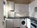 Kitchen: Modern and bright with white cabinetry. It includes a washing machine, fridge-freezer, microwave, and a gas cooker with an oven/grill.
