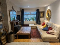 Coming up to the property you are welcomed by a 60sqm roof-top garden with plenty of sky, and a nice spot to relax, entering the conservatory, my favourite communal room in the flat, light and airy, with house plants, It's great even in winter, into the kitchen where we find all the essentials, cupboard space, and fridges. The lounge area is spacious with a fireplace, books and wide screen TV. The big windows and wooden floors make it very cozy and homely.