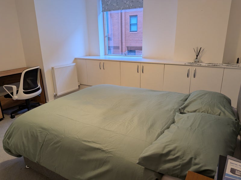 I work from home usually. The living room is a really lovely quiet space to work from, but you also have your desk in your room too. In addition, you can also use half of the white cupboards in the living room too (pls see photo) and ofc also half of the kitchen space as well.