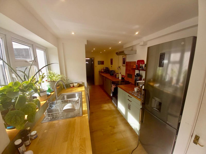 The house is full of light and is well insulated. There is a medium sized paved garden that gets a lot of sun throughout the day and has space for bike storage.