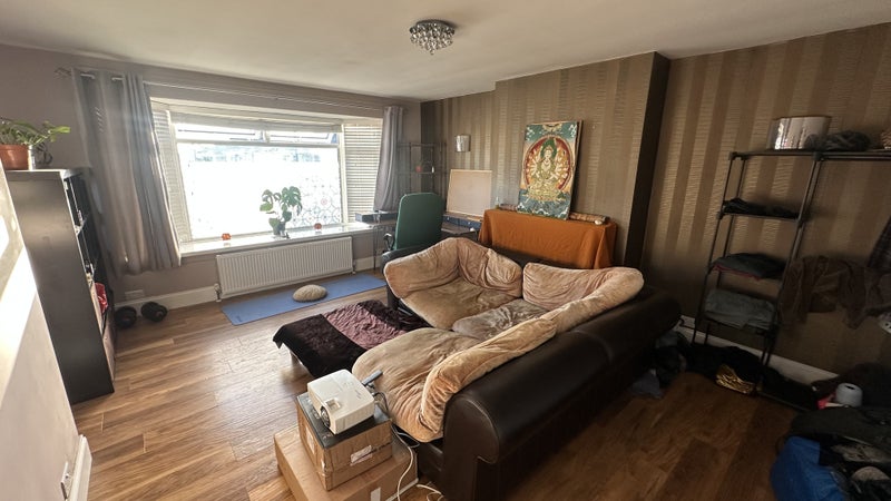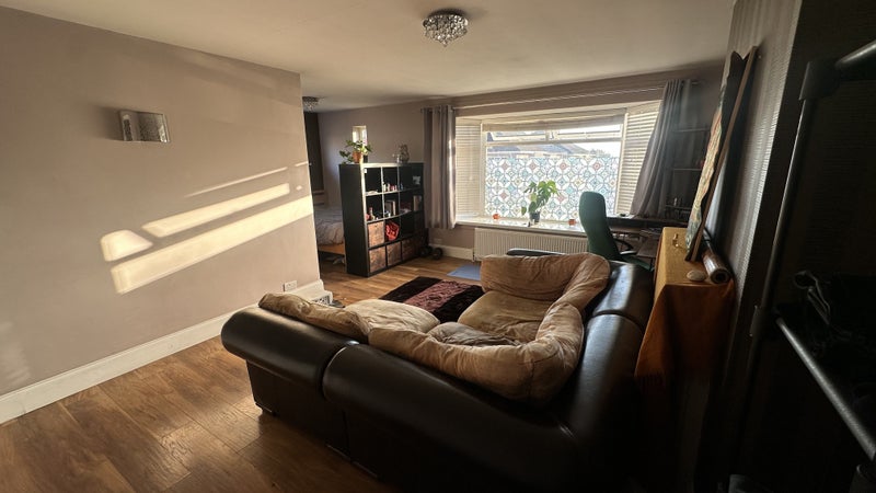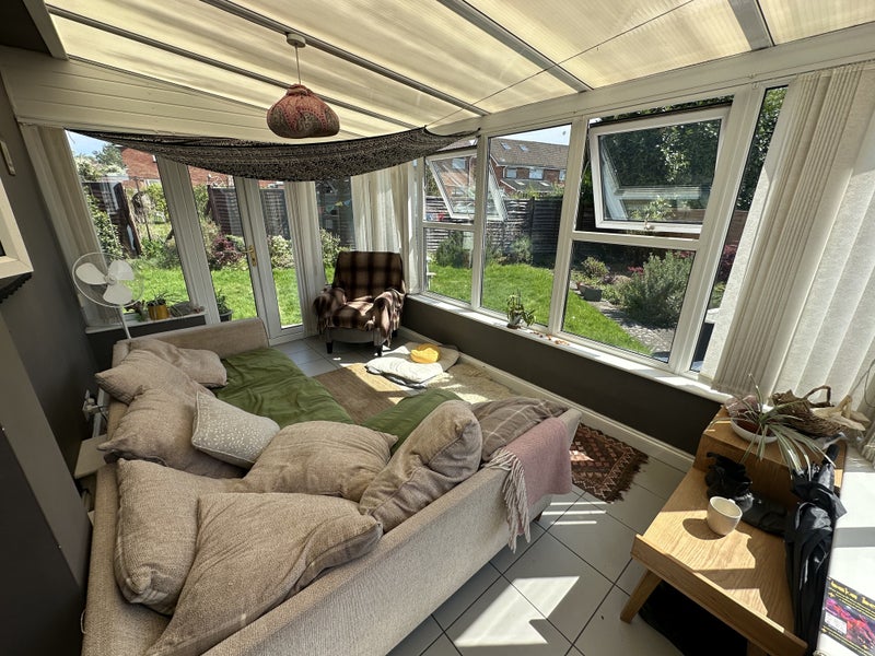 The house also has a shared living room/conservatory area, large garden, kitchen and bathroom.