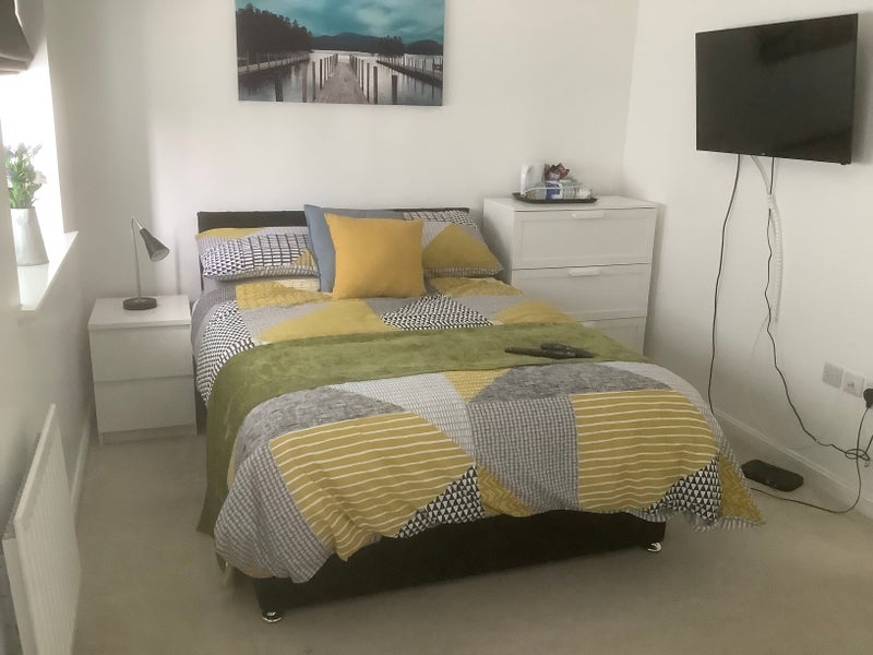 We live near the mall at cribs causeway close to skating rink cinema etc also located right by local bus routes and the M4 an M5 are only minutes away as is parkway train station., The room is a spacious double with a double bed and chest of drawers and bed side cabinet. The bathroom is located on the first floor and is only shared with my son .we have a downstairs utility room/ toilet as well . We have a large kitchen diner room with a tv and sofa but you are also welcome to use the lounge. There is also parking.