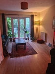 The house is a short way from the marina and the water. There’s a lovely quiet light living room opening onto a rear garden; a small kitchen, bathroom etc; and the area is nice and peaceful.