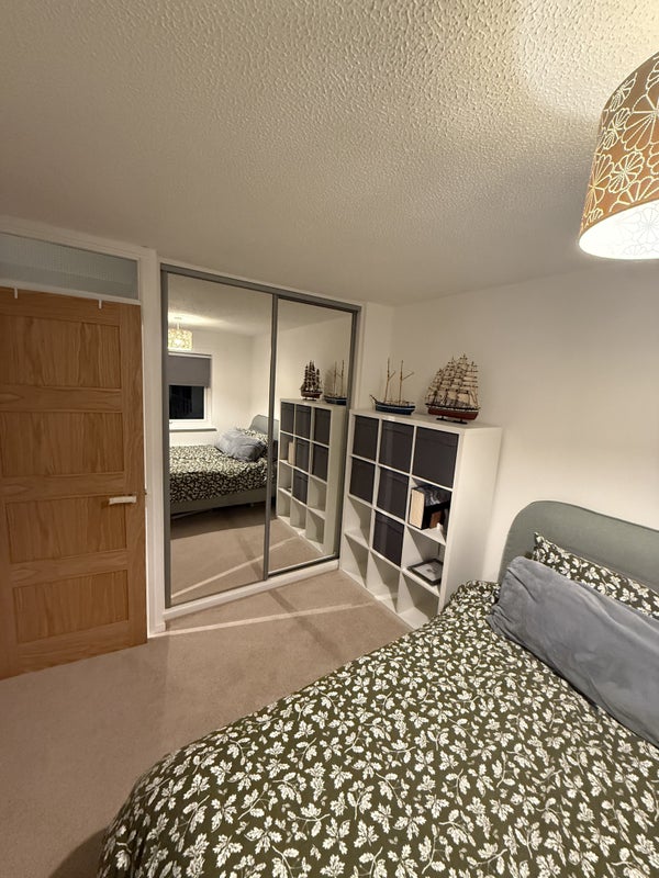 The monthly cost is inclusive of ALL bills, including broadband and council tax. The room comes furnished with a king size bed which has only been slept in a handful of times, built in wardrobes and some additional storage units, all in good, clean order. (Pictures to follow). The flat does have a garage which I currently use to put my car in. This has been taken into consideration when figuring out the monthly price. There is a lot of street parking right outside as well as visitor spaces for the court of flats.