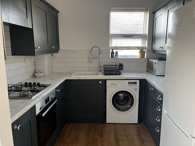 The upstairs flat consists of a large kingsize bedroom, a massive lounge, a dining room and kitchen. The kitchen was brand new last year and the bathroom is being totally renovated at the start of March this year.