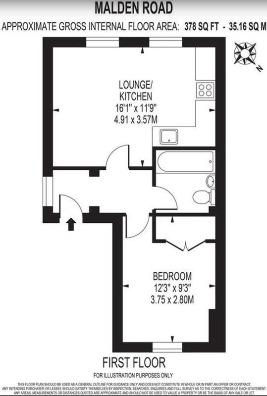 Bright and spacious 1-bedroom apartment on Malden Road, located in Chalk Farm.