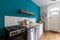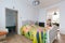 The apartment features a bedroom, bathroom, kitchen and living room.