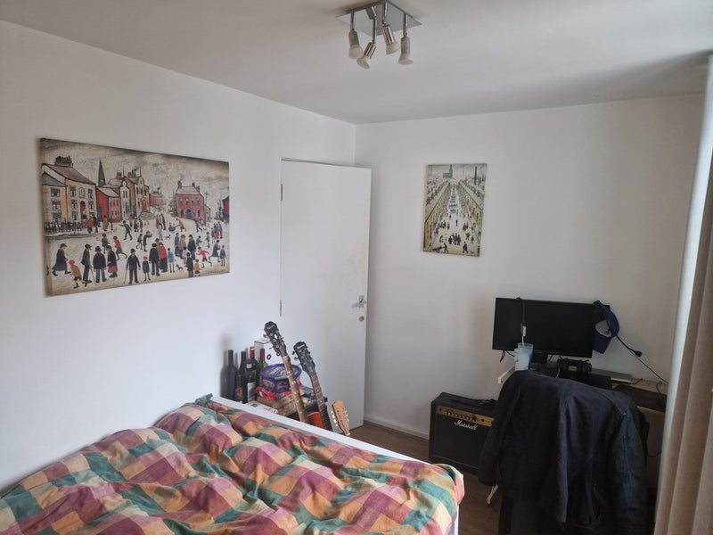 - comes with wooden double bed + comfy mattress, bedside table. Can provide desk if you want