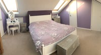 Huge and bright double bedroom with en-suite in a 3-bedrooms maisonette recently refurnished and redecorated. The room is fully furnished with a king-size bed, mattress, wardrobe, 3 chests of drawers, mirror, desk, darkening curtains, a small sofa-bed and private bathroom with shower. Pillows, towels and bed sheet are NOT provided.