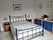Room 2. Double bed, desk, chair, double wardrobe with full length mirror, two chest of draws, bookcase, two bedside tables and lamps.